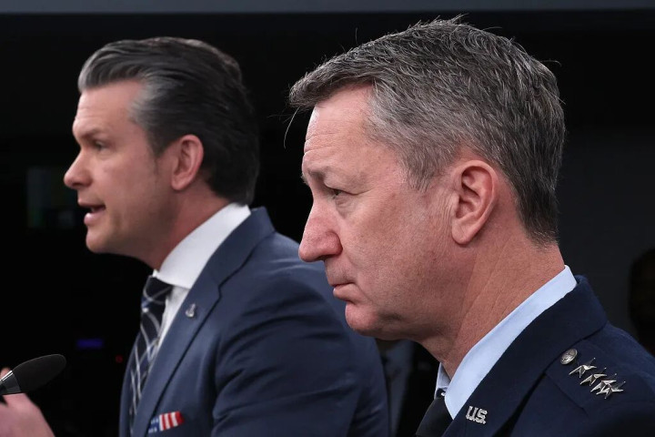 当地时间3月31日,美国国防部长赫格塞思与美军参谋长联席会议主席丹·凯恩就针对伊朗的军事行动举行新闻发布会。